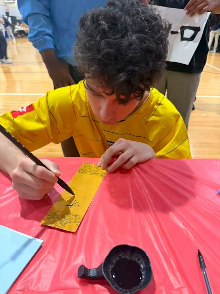 - The Art of Calligraphy: The calligraphy station remained a focal point of student interest. Under the patient guidance of our volunteers, students learned to write their names and auspicious characters such as “Love” (爱) and “Health” (健康).
